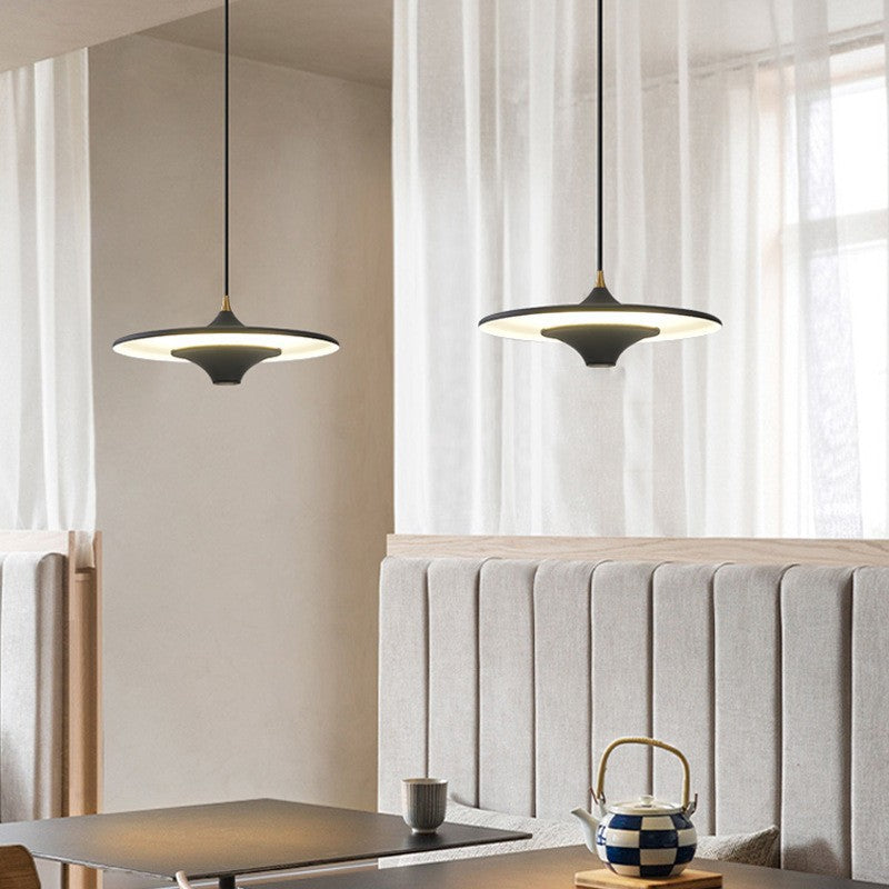 This striking small UFO pendant light boasts a sleek, metal spaceship-inspired silhouette that instantly adds a futuristic elegance to any space. Its unique design draws the eye, making it a standout piece that brings a touch of modern innovation to rooms, whether it's a dining area, bar, or bedroom.